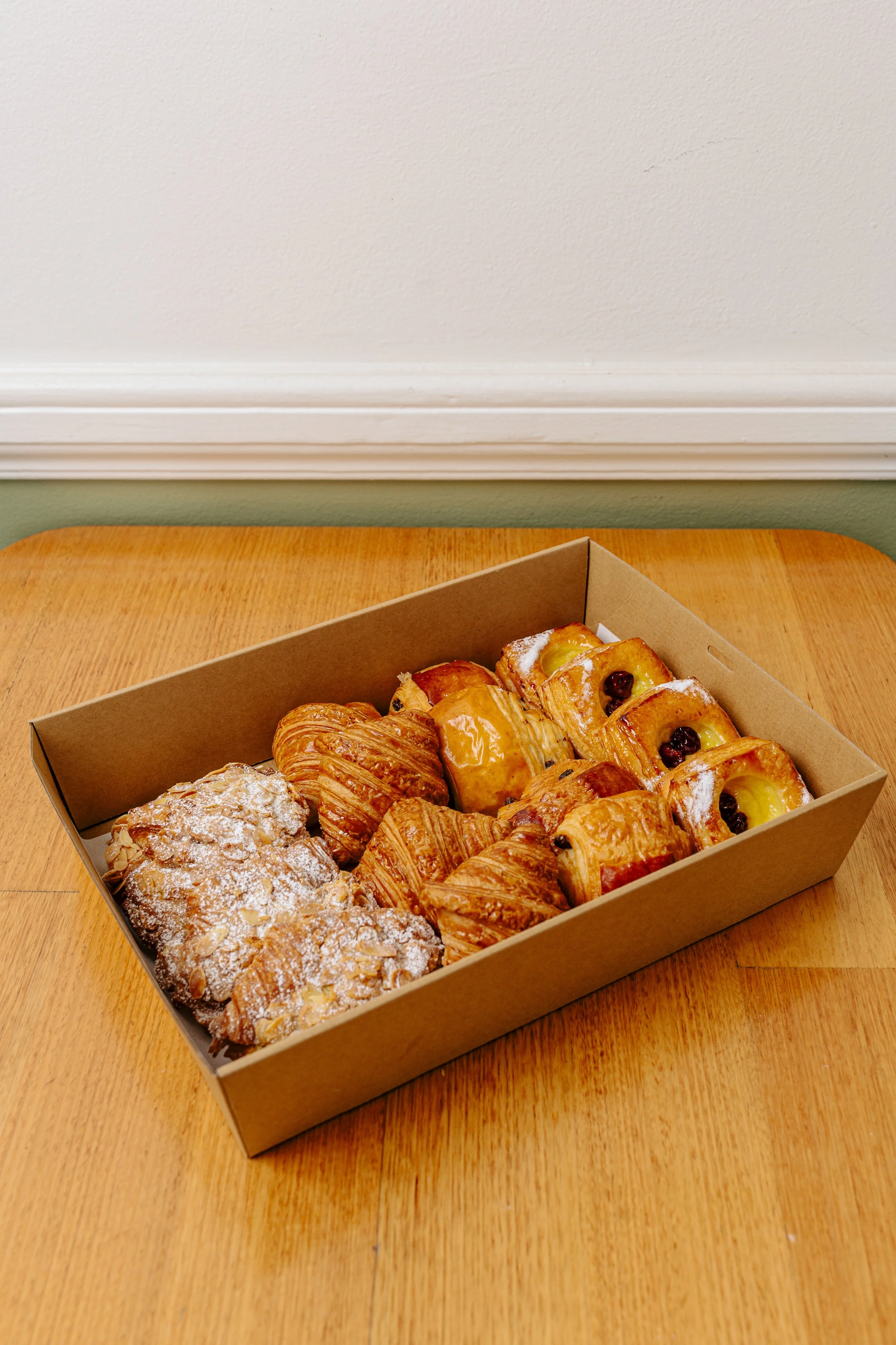 Breakfast (pastries, sliders, yoghurt & muesli cups). Sandwiches, canapés, salads, sweet treats & cakes. You can view the full menu here.